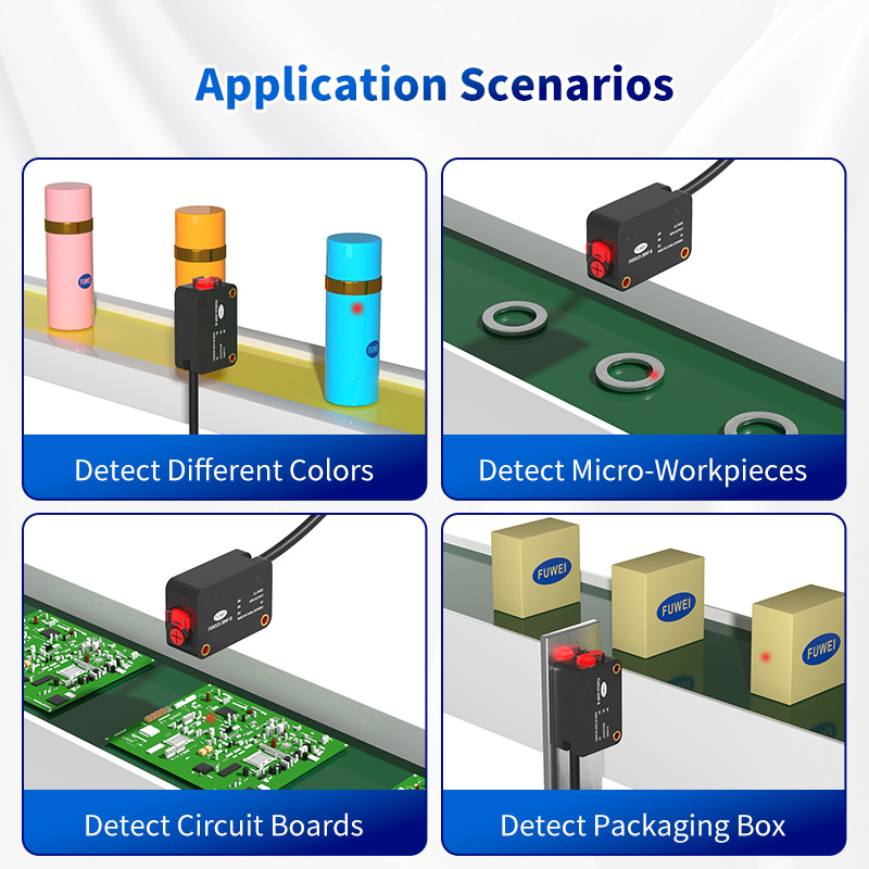 Objektin väri ei vaikuta taustan suppression fotoelektriseen anturi FGNS10-30-30 -sarjan havaitsemisetäisyyteen;