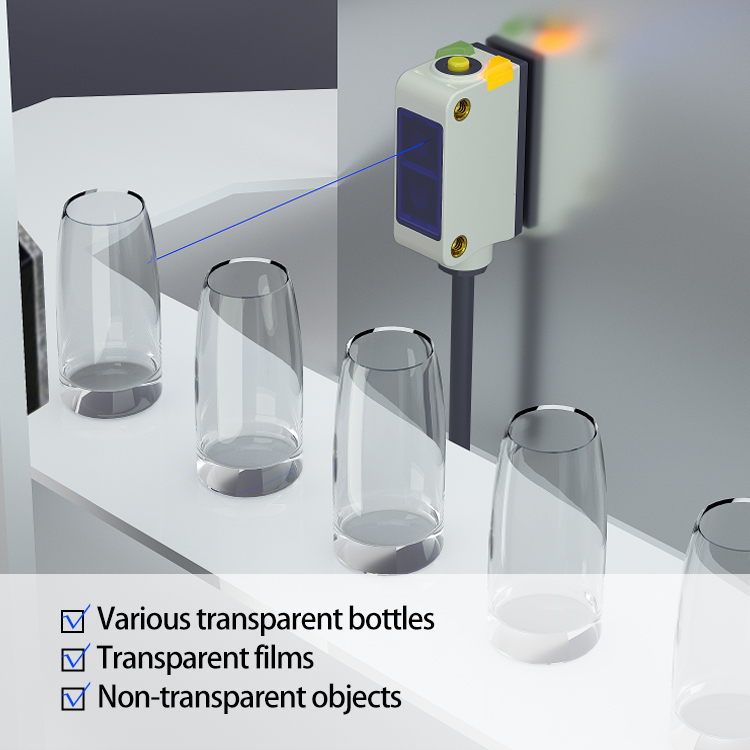FGNE10-50NFR-T-läpinäkyvä pullon havaitsemisanturi sisältää edistyneen tekniikan, joka mahdollistaa läpinäkyvien pullojen tarkan havaitsemisen, jopa haastavissa ympäristöissä. Sen kyky havaita ja tunnistaa tarkasti erikokoiset pullot, muodot ja materiaalit tekevät siitä välttämättömän työkalun erilaisissa teollisissa sovelluksissa, kuten pakkaus-, täyttämis- ja lajittelulinjoissa.