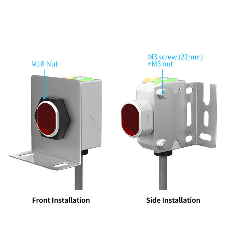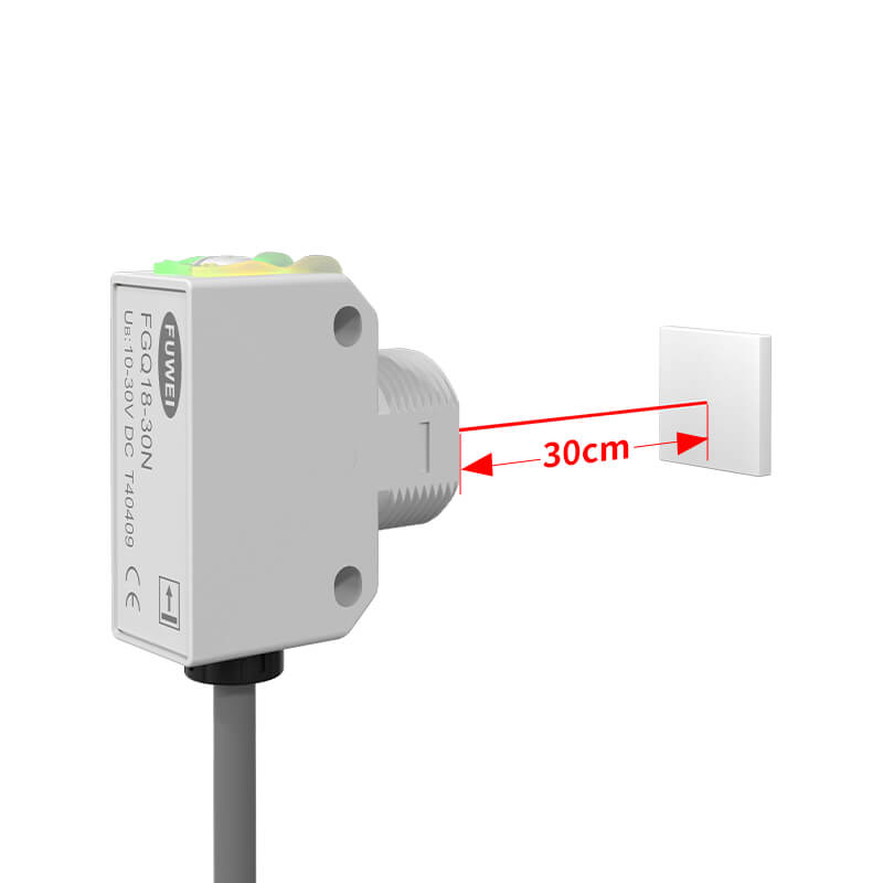FGQ18-30N-anturin diffuusi heijastava muotoilu mahdollistaa esineiden havaitsemisen mittaamalla niiden pinnoilta heijastuneen valon. Tämä ominaisuus tekee siitä sopivan monenlaisiin sovelluksiin, kuten kuljetinhihnoille, kokoonpanolinjoille ja pakkauskoneille, joissa tarkka ja luotettava tunnistus on ratkaisevan tärkeää.