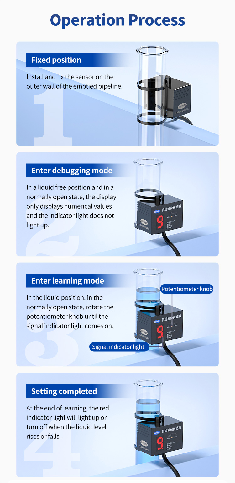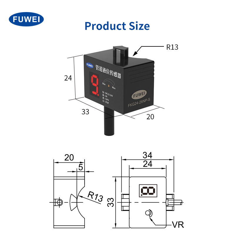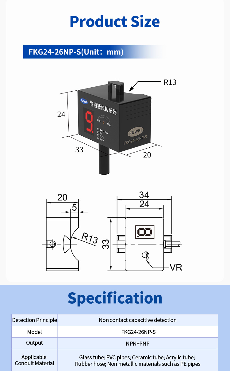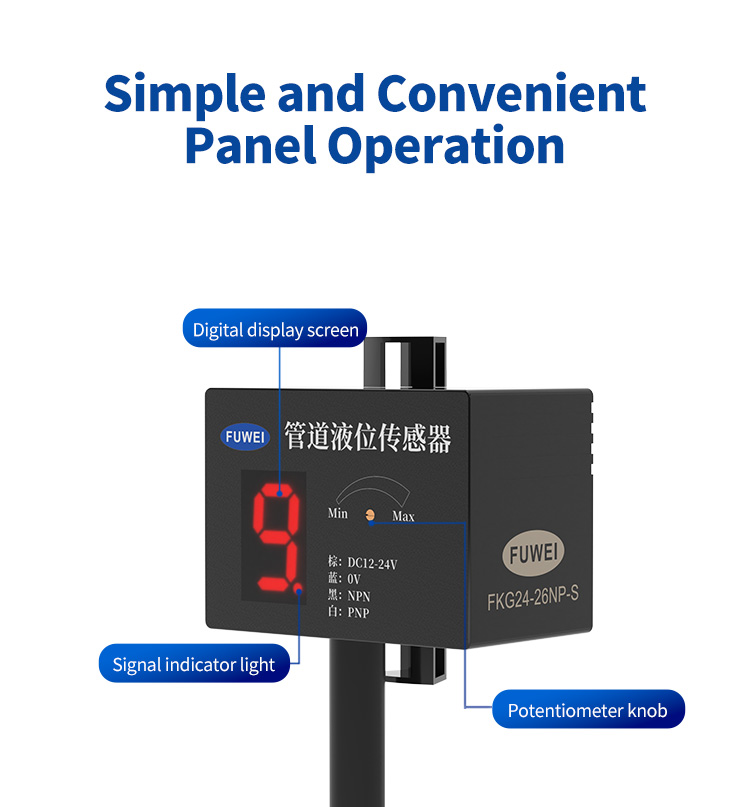 FKG24-26NP-sarjan putken nestemäinen anturin kapasitiivinen periaate, putkimateriaali ei vaikuta helposti