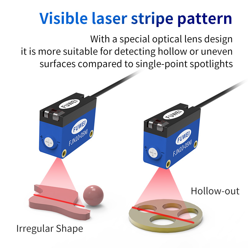 Anturi on varustettu tuoduilla laserpääkomponenteilla, voimakkaalla häiriöiden vastaisilla kyvyillä, jopa monimutkaisessa sähkömagneettisessa ympäristössä tai vaihtavissa valopaikoissa, mutta se voi myös toimia vakaasti ja pitkä käyttöikä, vähentää ylläpitokustannuksia. Itsepotentiometrin nuppi tukee käyttäjiä säätämään joustavasti herkkyyttä erilaisten työolojen tarpeiden tyydyttämiseksi.