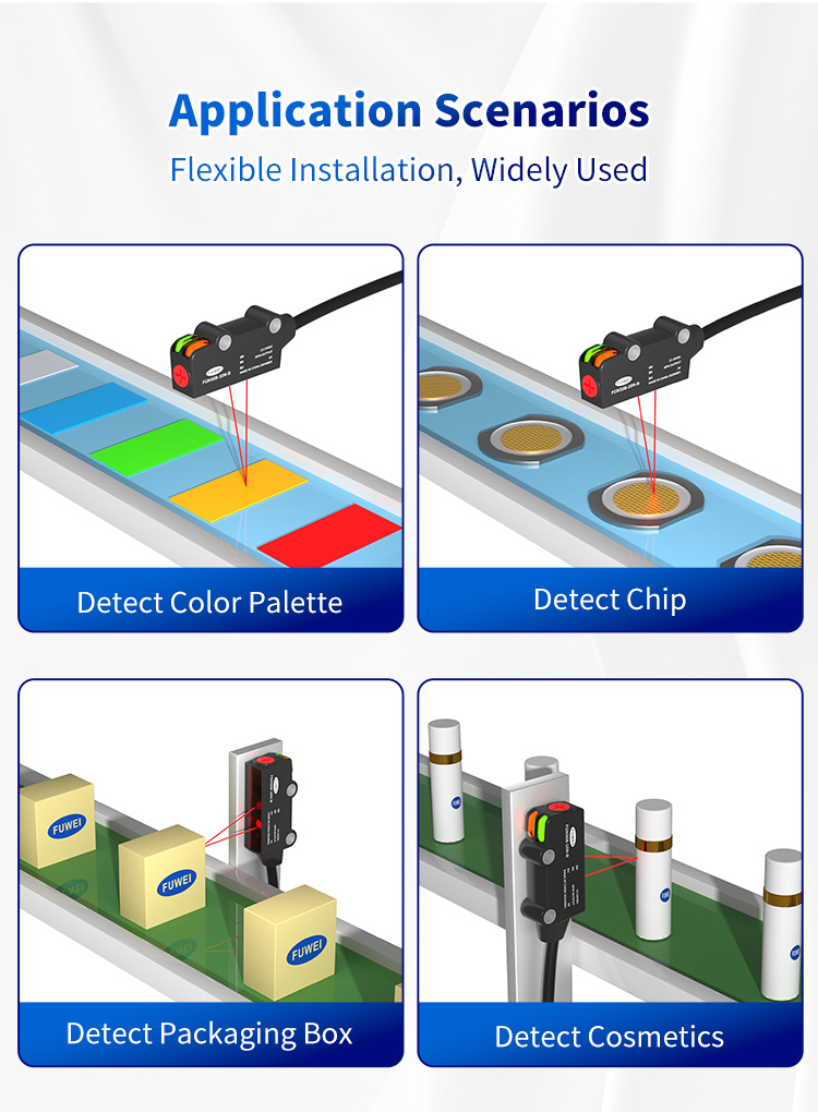 Teollisuuksilla, kuten tulostuksella ja tekstiileillä, värilevyn havaitsemisantureilla on kriittinen rooli. FGNS08-10-sarja havaitsee tarkasti eri sävyjen värilevyt, jotka eivät vaikuta värisyvyyteen, mikä varmistaa yhdenmukaisen tuotteen laadun.