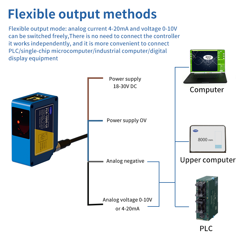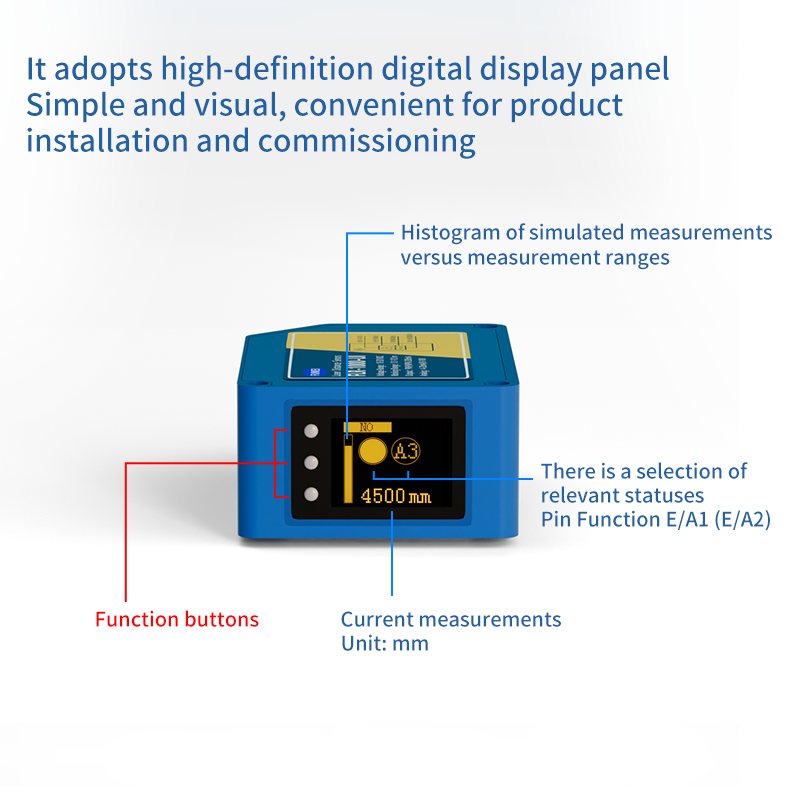 Toinen tärkeä kohokohta tästä laser etäisyysanturista on sen laaja mittausalue, joka kattaa 100-10 100 mm. Tämän laajan alueen avulla se voi helposti käsitellä erilaisia mittausvaatimuksia ilman, että anturin vaihtaminen on tarpeen, vähentäen merkittävästi laitteiden muutoksiin liittyvää aikaa ja toiminnallista vaivaa ja parantamalla työtehokkuutta. Olipa kyse pienten osien tarkka mittaus tai suurten esineiden etäisyyden havaitseminen, se pystyy käsittelemään kaiken.