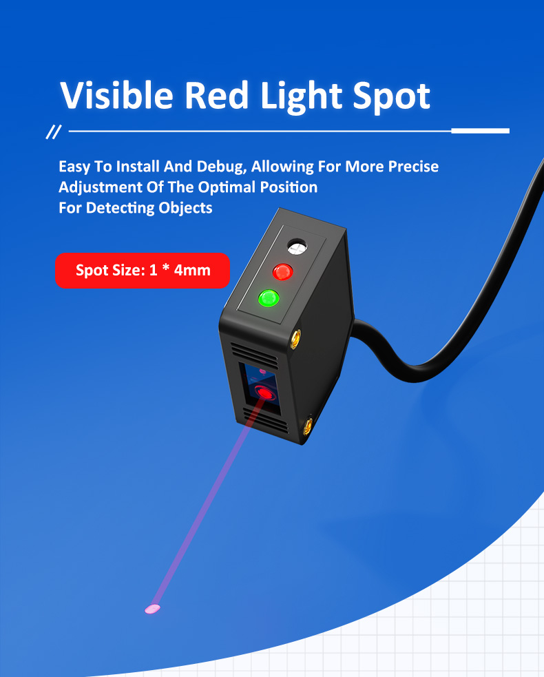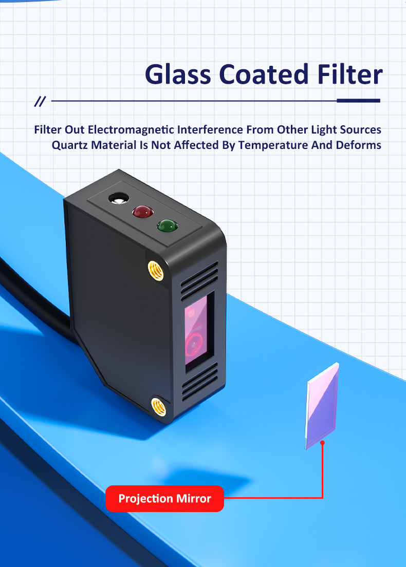 Laite on varustettu näkyvällä punaisella valopisteellä, joka tuo suurta mukavuutta asennukseen ja virheenkorjaukseen. Operaattorit voivat intuitiivisesti tarkkailla valopisteen sijaintia ja kalibroida nopeasti havaitsemispisteen varmistaen, että anturi on parhaassa työtilassa, mikä parantaa tehokkaasti asennuksen tehokkuutta ja havaitsemistarkkuutta. Sisäänrakennettu lasipäällysteinen suodatin on keskeinen interferenssin vastainen työkalu, joka voi tehokkaasti suodattaa kulkeutuvan valon ja sähkömagneettisen häiriön ympäristössä, varmistaen vastaanotettujen signaalien tarkkuuden.