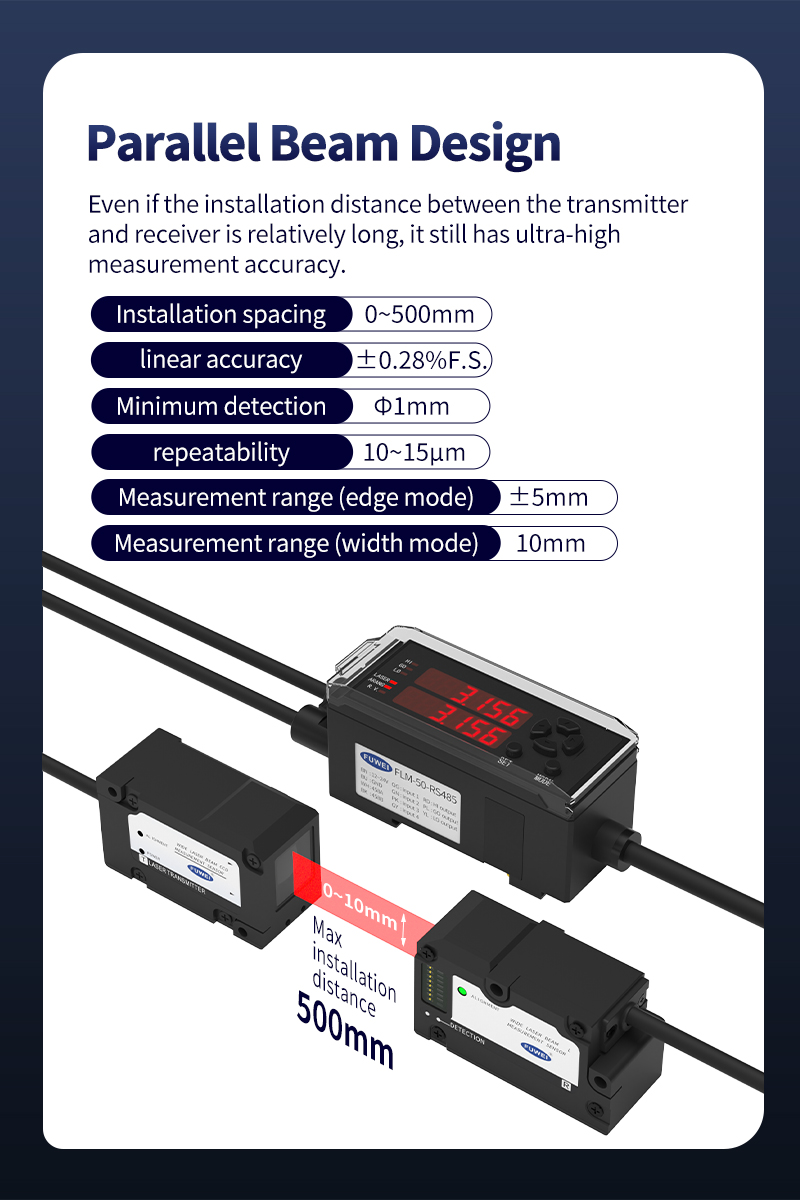 Teollisuuden 4.0 aallon alla korkean tarkkuuden, kosketukseen liittymättömät mittaustekniikka on tullut älykkään valmistuksen ”ydinmoottori” jaCCD -johdon halkaisijan mittausanturitNiistä on tullut avaintyökalu tarkkuuden valmistuksen alalla erinomaisen reaaliaikaisen suorituskyvyn, häiriön vastaisen kyvyn ja mikronin tason tarkkuuden vuoksi. FWE: n käynnistämä FLM-50-RS485 Laser-etäisyyden mittausanturi ottaa 2 ms: n nopean vasteen ja 10 μm toistettavuuden ydinetuina ja yhdistyvät innovatiiviseen suunnitteluun tehokkaiden ja vakaiden mittausratkaisujen tarjoamiseksi teollisuusskenaarioihin.