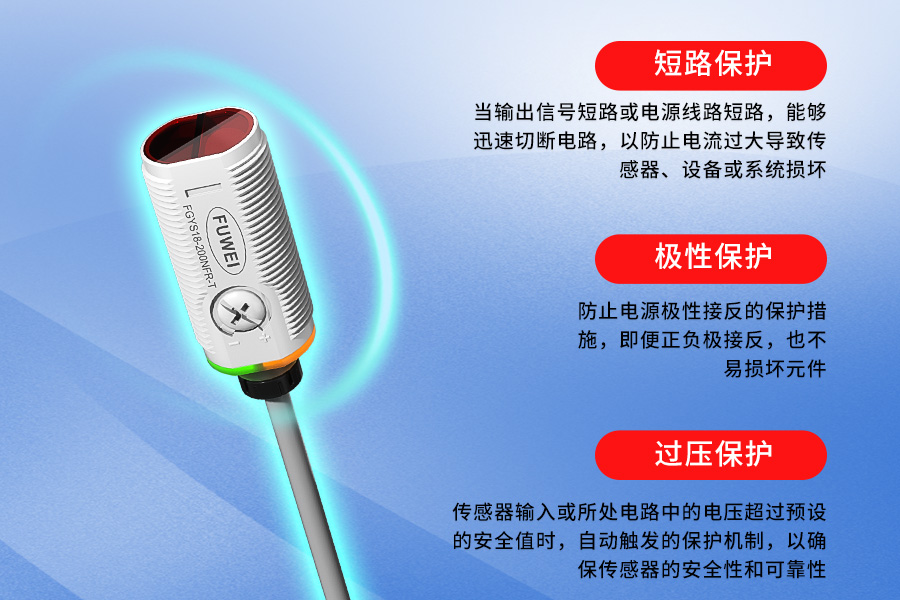 Anturin poikkeuksellinen suorituskyky esitetään ensin sen kattavan kolminkertaisen suojajärjestelmän kautta. Kun lähtösignaali tai voimajohtopiiri on oikotitapa, laite voi irrottaa piirin millisekunnissa, estäen järjestelmän virran ylikuormitusvauriot tehokkaasti. Ainutlaatuinen napaisuussuojaussuunnittelu varmistaa, että vaikka operaattorit vahingossa kääntäisivät virtalähteen napaisuuden, anturin ydinkomponentit pysyvät ehjinä. Ylijännitesuojausmekanismi aktivoituu automaattisesti, kun syöttöjännite ylittää esiasetetut turvallisuusrajat, tarjoamalla kattavat suojatoimenpiteet vakaaseen toimintaan monimutkaisissa teollisuusympäristöissä.