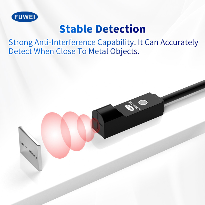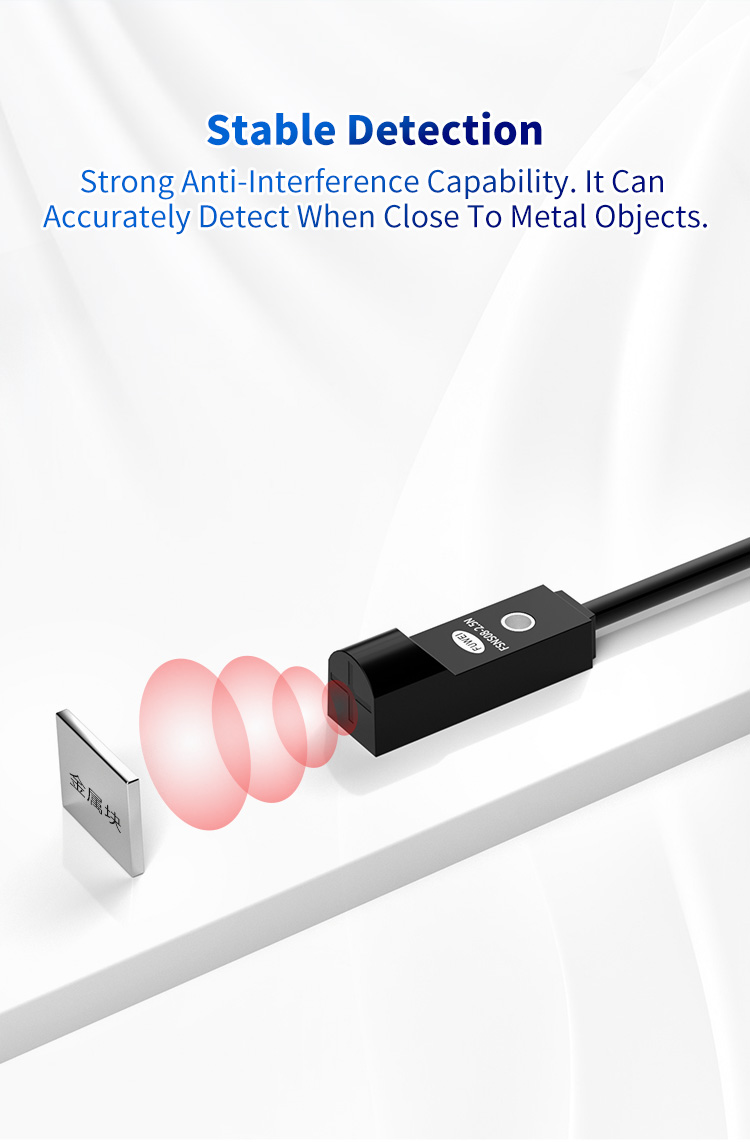 Kestävyys on sen suunnittelun ydin. Vankka IP67-vesitiivis ja pölytiivis FSNS08-2.5N on rakennettu kestämään altistumista jäähdytysnesteille, öljyille ja ilmassa oleville hiukkasille. Tämä varmistaa pitkän käyttöiän ja vähentää huoltotarvetta minimoiden seisokit. Fyysisen kestävyytensä lisäksi anturissa on edistynyt piiri, joka tarjoaa vahvan häiriönestokyvyn. Tämä tarkoittaa, että se voi havaita tarkasti ja johdonmukaisesti metalliesineitä, kuten metallialustat, nokat tai kolikot ilman, että lähellä olevien moottoreiden tai koneiden sähköinen melu vaikuttaa siihen.