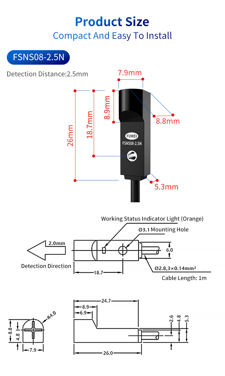 China Square induktiivinen läheisyysanturi FSNS08D-2.5N Toimittaja, Valmistaja - Suora hinta tehtaalta - Fuwei